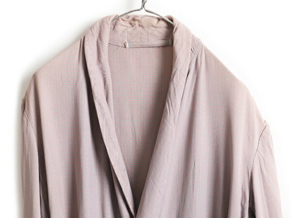 【8/25 24h限定 ポイント5倍!】 60's ビンテージ ■ ポケット付き チェック レーヨン ロング ガウン コート ( メンズ 男性 M 程) 古着 ローブ ロング丈 60年代 ベルト付き| US古着 中古 厚手 レーヨンガウン ロングガウン ガウンコート ロングコート サーモンピンク ターコ