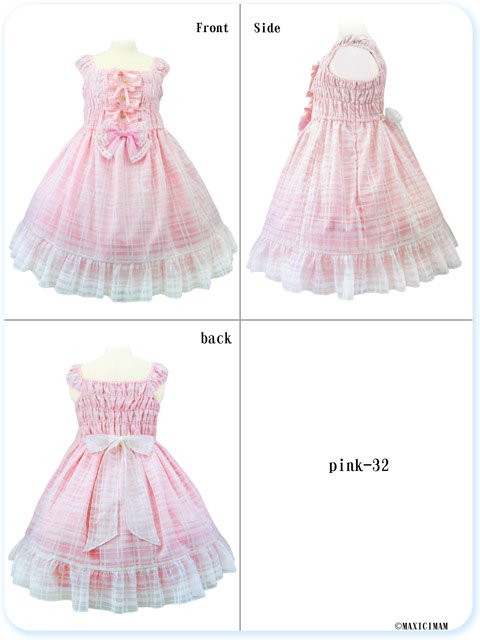 26800円+(税)→24120円+(税) 光沢感のあるサテン生地の上に、チェックのオーガンジー生地が重なり、透け感と、オーガンジーの柔らかなふわふわ感がとってもかわいいジャンパースカートです。
