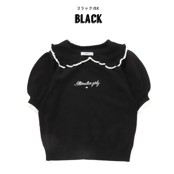 【サイズ】 50cm 60cm 70cm 80cm 90cm 95cm 100cm 110cm 120cm 130cm 140cm 150cm 160cm レディース ママ 【商品カテゴリ】 子供服 可愛い ウエア 【商品カラー】 ブラック ホワイト ブルー 【イベントカテゴリ】 誕生日 お祝い プレゼント ギフトセットできます 山の学習 海の学習 林間学校 学校行事 式典【ALGY/アルジー】衿配色 フリル 半袖 ニット 柔らかな春ニットの 甘く可愛い 雰囲気の半袖トップスです。