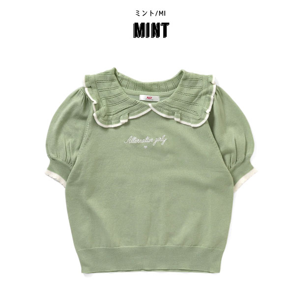 <50%OFF>2022夏 春【ALGY/アルジー】衿配色 フリル 半袖 ニット≪130cm 140cm 150cm 160cm≫子供服 キッズ 女の子 女児 子ども ジュニア 通学 小学生 中学生 Tシャツ 新作 DAY4