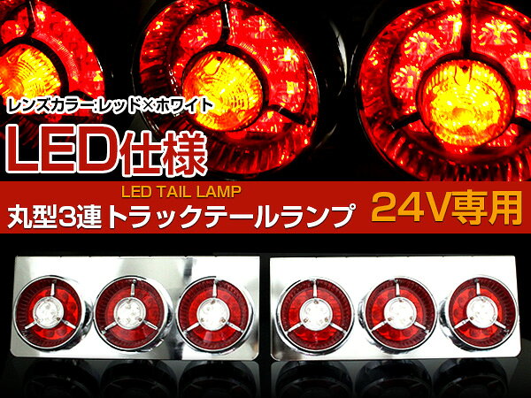 トラック フルLED 24V 丸形 丸型 ヤンキー テールランプ 3連 紅白 赤/白 レッド/ホワイト 左右セット【トラックテールランプ テールライト ダンプ カスタム パーツ レトロ 標準 中型車 大型車 4t/4トン 10t/10トン】
