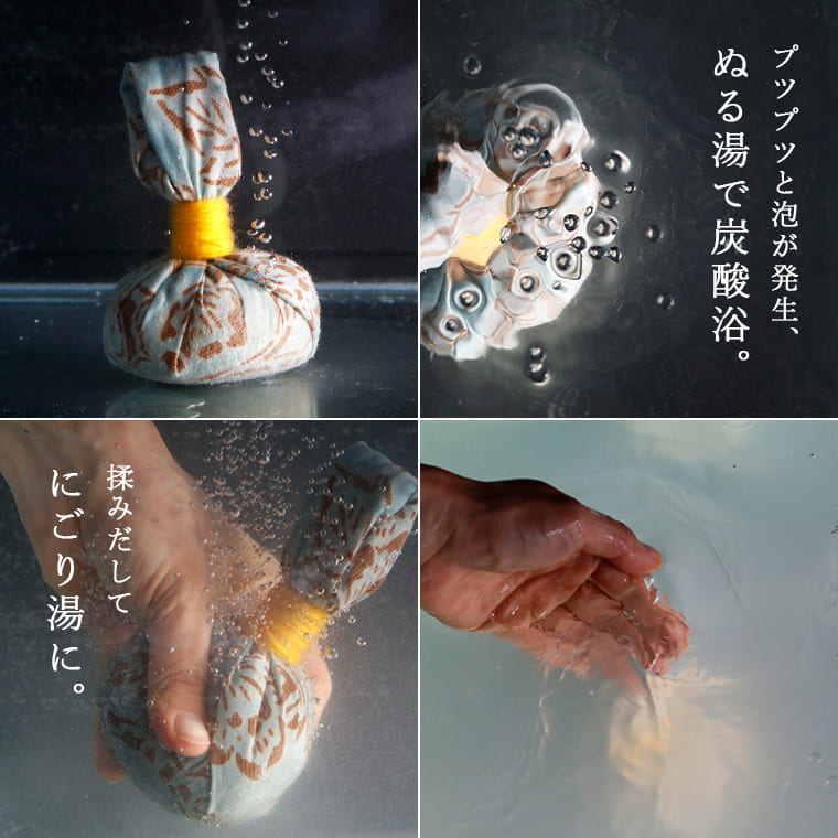 浴玉ひとつで、プツプツ炭酸泉からとろみのあるにごり湯を楽しめる、 お風呂上がりは寝るまでぽかぽか、吸い付くようなお肌のしっとり感。